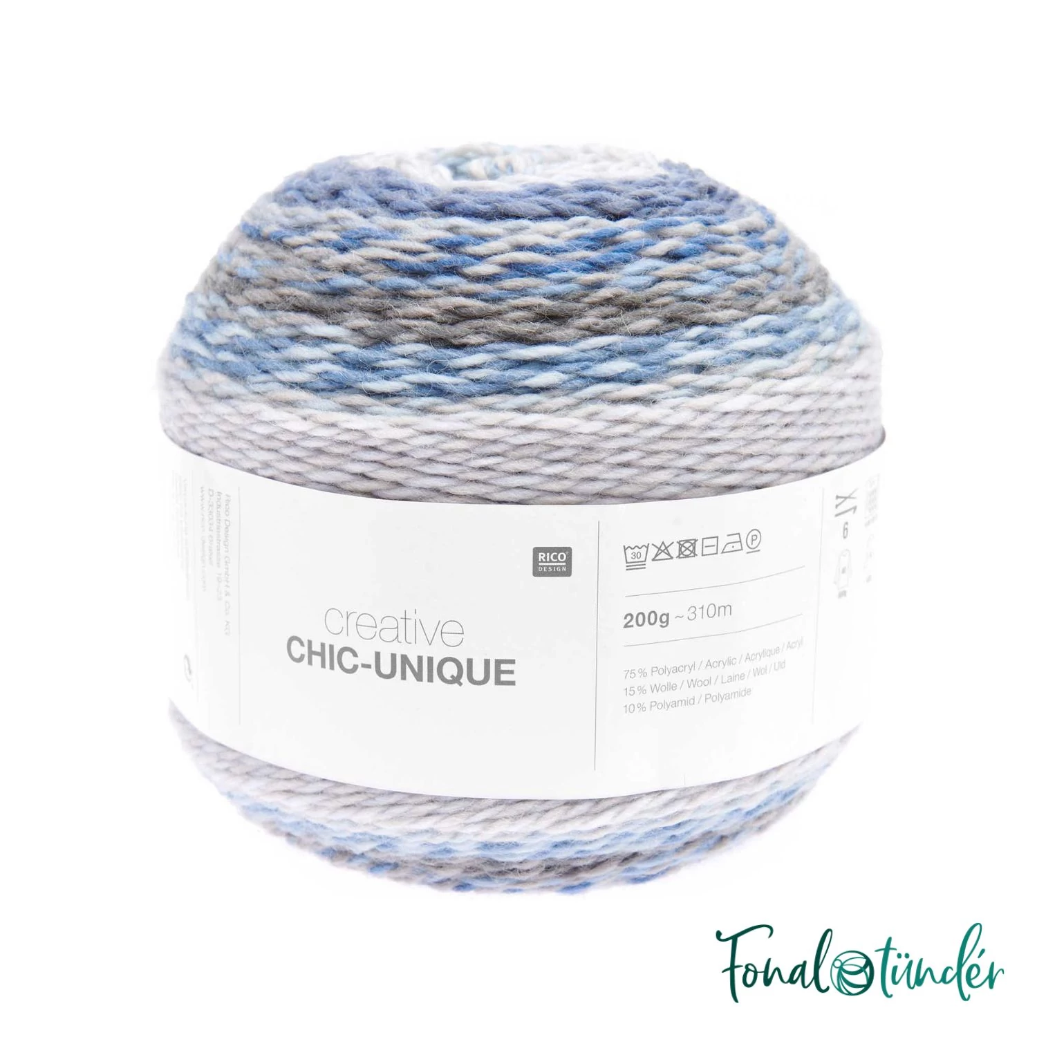 A Rico Chic-Unique 017-es gombolyaga a Kékség fantázianevet kapta csodás kék árnyalatai miatt. Pihepuha vastag (5) fonal, 15% gyapjú tartalmát, műszálak egészítik ki, hogy strapabíró és könnyen kezelhető legyen. Minden egyes gombolyag egyedien színátmnetes. Két különböző színű szálból sodorják és mivel a színváltások mindkét szálnál máshol történnek, a színátmenetek teljesen egyediek és karakteresek. A szálak finoman sodrottak, nagyszerű szupervastag hatást adva a belőle készült kiegészítőknak. Ahogy kötöd belőle a sálat, vagy pulóvert, magától gyönyörű sávokban más-más színű mintázatok alakulnak ki a puha meleg anyagon. Mindemellett szigorú OEKO-TEX minősítéssel bíró, megbízható bőrbarát fonal. Varázsolj csodás őszi és téli kiegészítőket a hatalmas 200 grammos gombolyagokból!