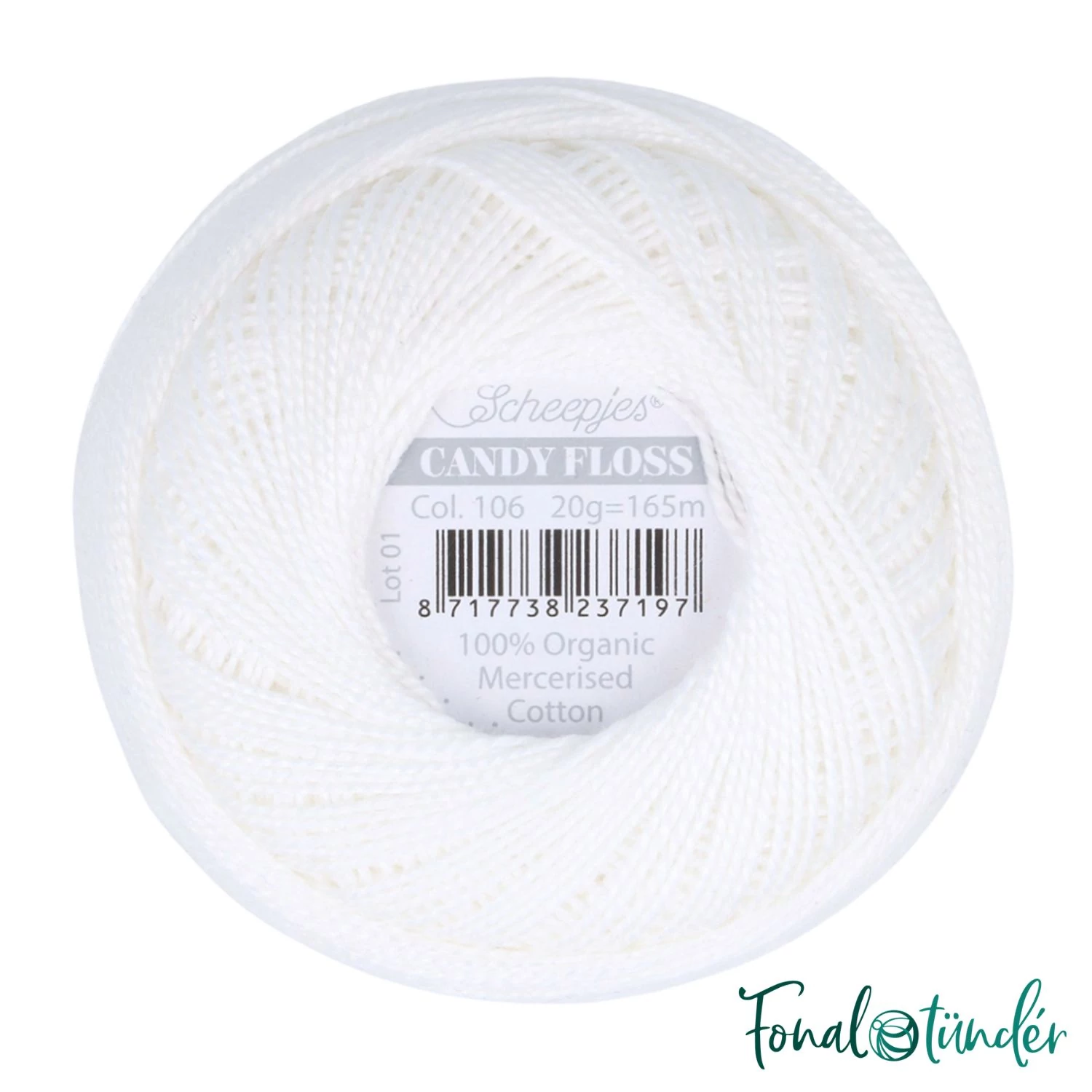 A Scheepjes Candy Floss 106 Snow White extra vékony, 100% organikus pamut hímzőfonal. Hófehér színe a messzi hófödte tájak hangulatát idézi. A Candy Floss erősen sodrott, finoman selymes felületű, mercerizált hímzőfonal, mellyel minden hímzés és öltés egyenletes és tökéletes lesz! No.10-es vastagságú hímzőfonal, melyet 0.75-1.25 mm-es tűvel akár meg is horgolhatsz csipkének, vagy mikroamiguruminak. Egy gombolyag 20 gramm, 165 méter hosszú.